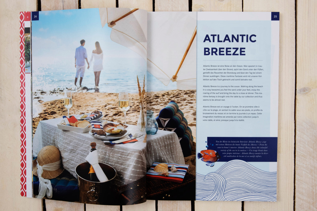 Lifestyle für den Tisch. Das ist es, was Paper + Design seinen Kunden bietet. Das Unternehmen produziert Servietten, Tischläufer und weitere Accessoires, mitten im Erzgebirge. Eines der wichtigsten Vertriebsinstrumente ist ein Katalog, der jährlich in diversen Ausgaben erscheint. Seit 2017 durfte KRAUSSREINHARDT bei vier Jahrgängen die Katalogproduktion verantworten und ein neues Design kreieren, das von der TU Chemnitz auf Usability geprüft wurde. Wir entwickelten visuelle Konzepte, ließen spannendes Storytelling in jede Kollektion einfließen und übernahmen die Art Direction bei den Fotoshootings. Das Gesamtwerk: übersichtlich, zeitgemäß und auf jeder Seite authentisch.